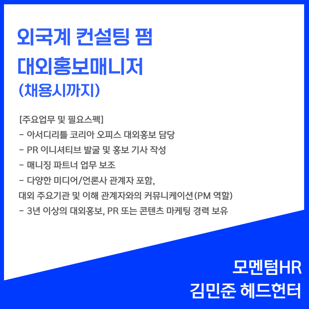 📢 [외국계 컨설팅펌] - 대외홍보매니저(채용시까지)