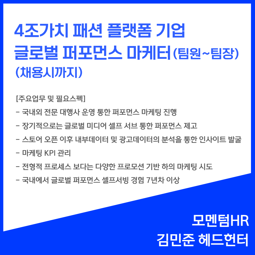 📢 [패션플랫폼 기업] - 글로벌 퍼포먼스 마케터(채용시까지)