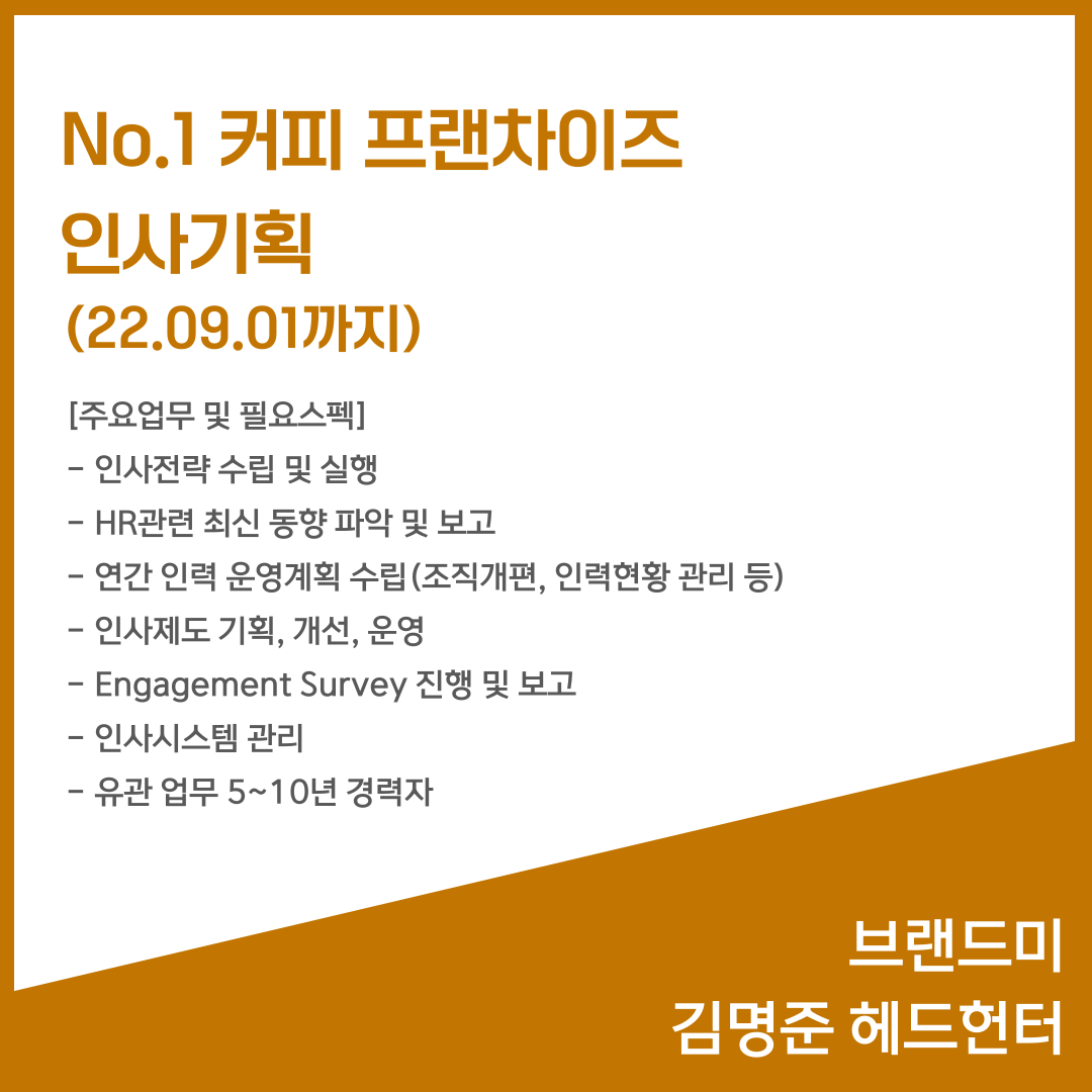 📢 No.1 커피 프랜차이즈 - 인사기획(22.09.01까지)
