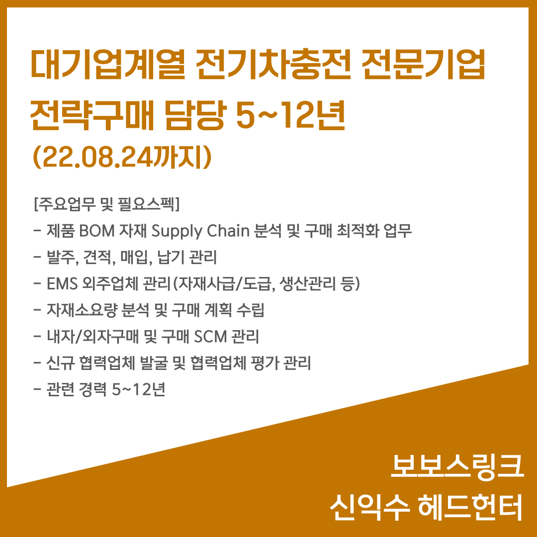 📢 대기업계열 전기차충전 전문기업 - 전략구매 담당 5~12년(22.08.24까지)
