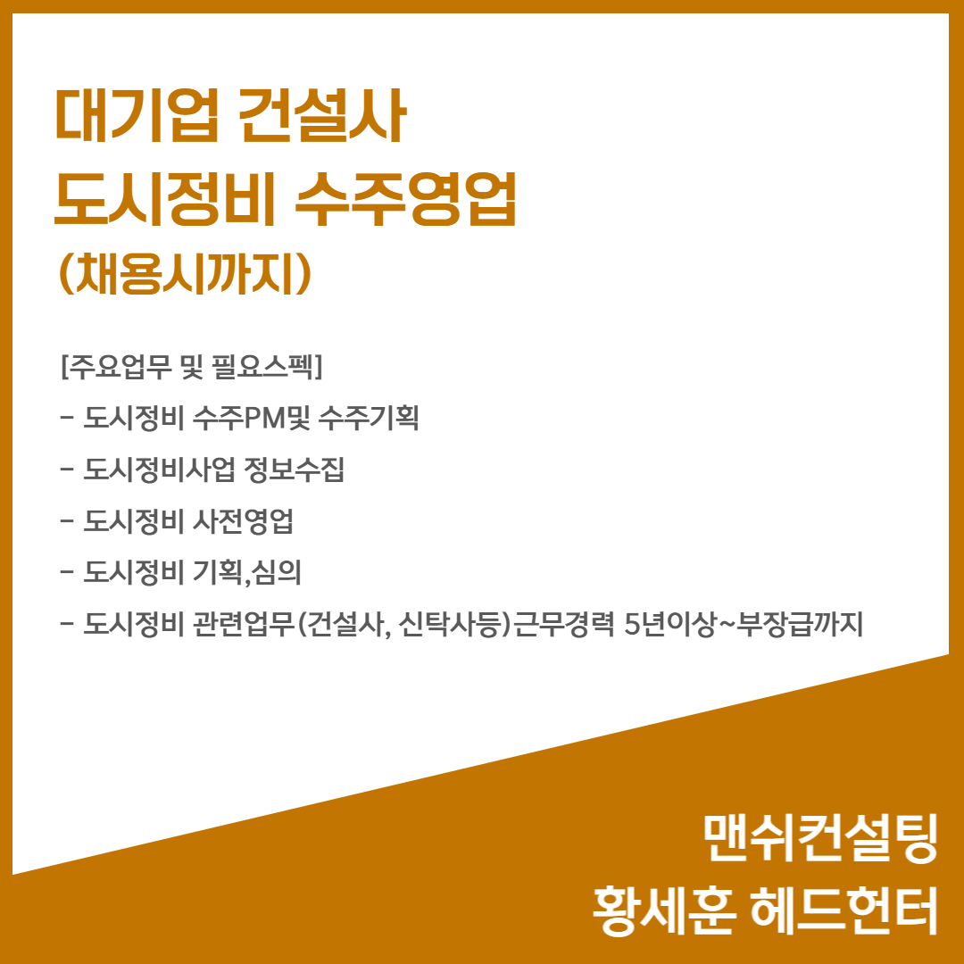 📢 대기업 건설사 - 도시정비 수주영업(채용시까지)