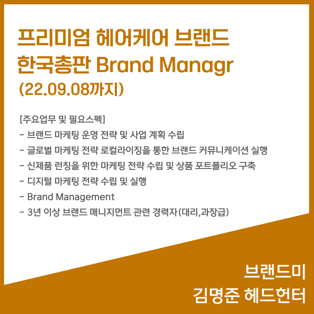 📢 프리미엄 헤어케어 브랜드 - 한국총판 Brand Managr(22.09.08까지)