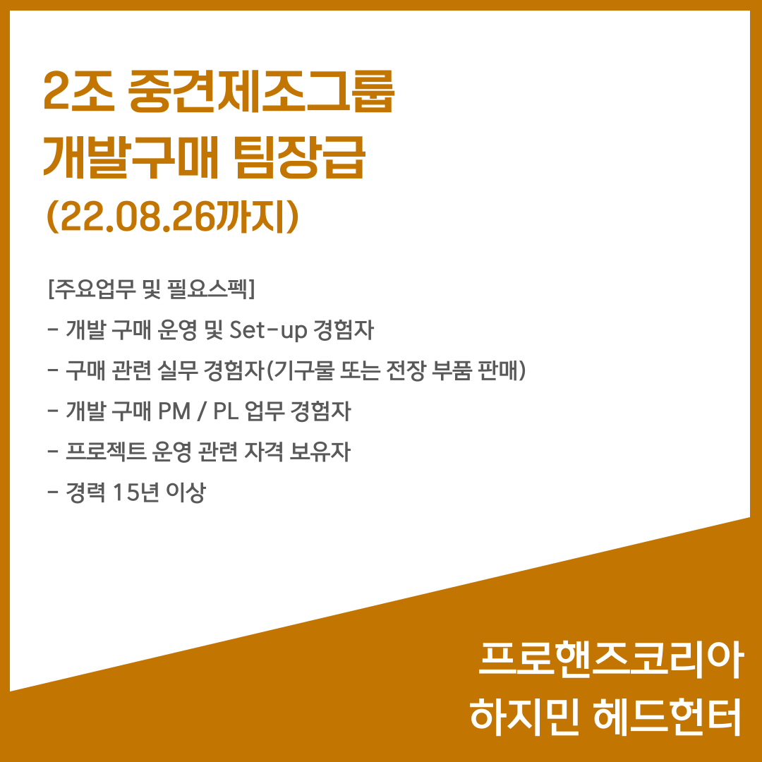 📢 2조 중견제조그룹 - 개발구매 팀장급(22.08.26까지)