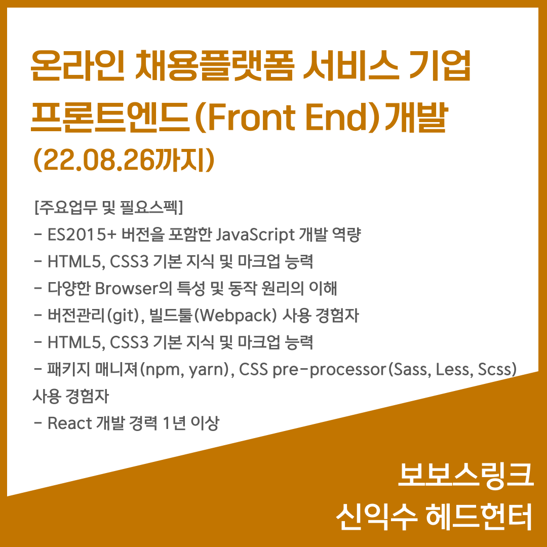 📢 온라인 채용플랫폼 서비스 기업 - 프론트엔드(Front End)개발(22.08.26까지)