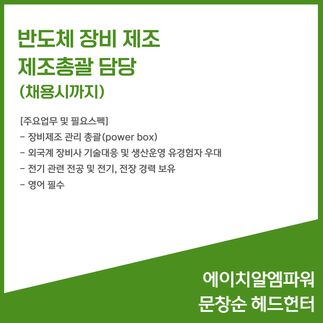 📢 반도체 장비 제조 - 제조총괄 담당(채용시까지)
