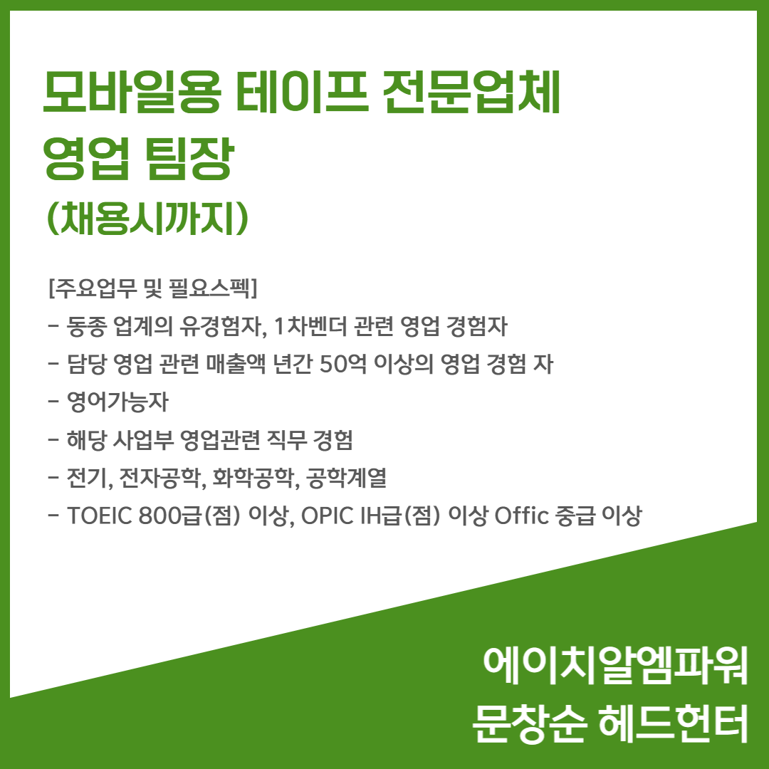 📢 모바일용 테이프 전문업체 - 영업 팀장(채용시까지)