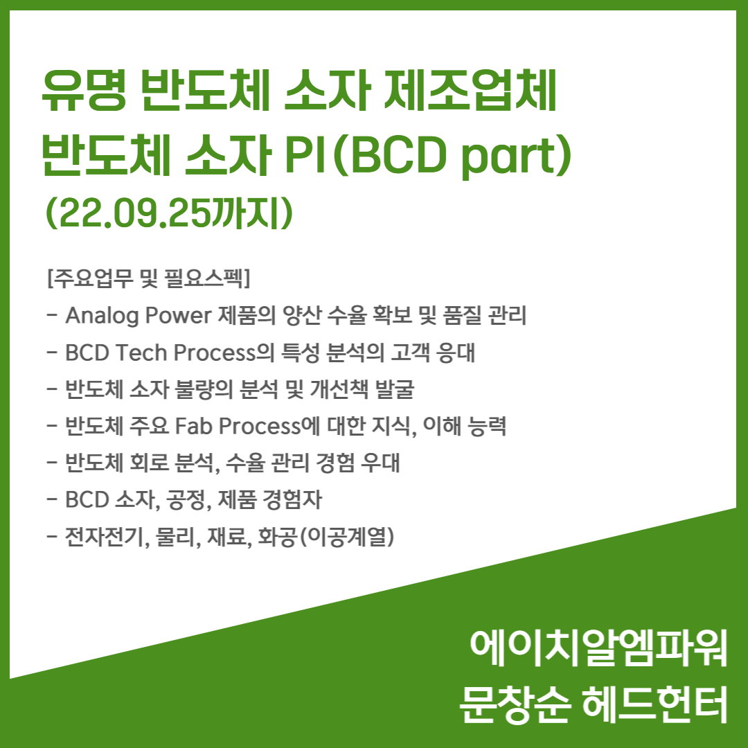 📢 유명 반도체 소자 제조업체 - 반도체 소자 PI(22.09.25까지)