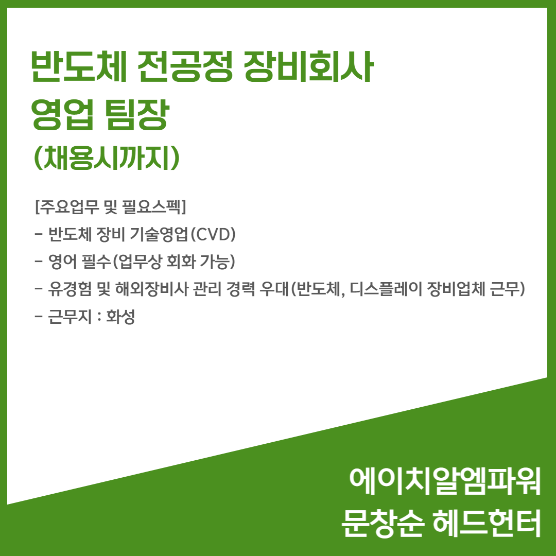 📢 반도체 전공정 장비회사 - 영업팀장(채용시까지)