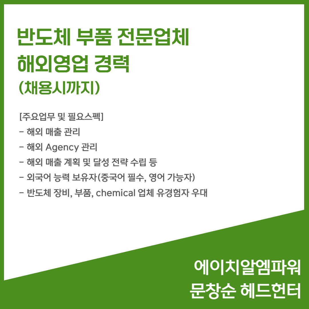 📢 반도체 부품 전문업체 - 해외영업 경력(채용시까지)