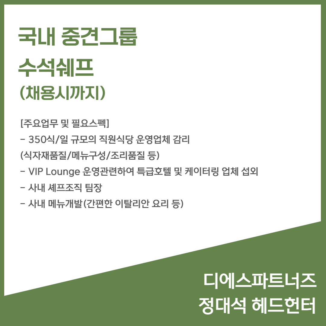 📢 국내 중견그룹 - 수석쉐프(채용시까지)