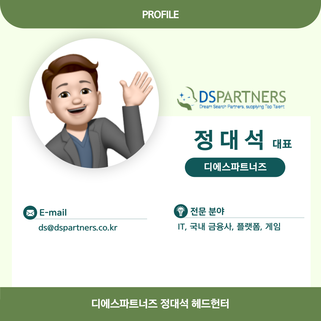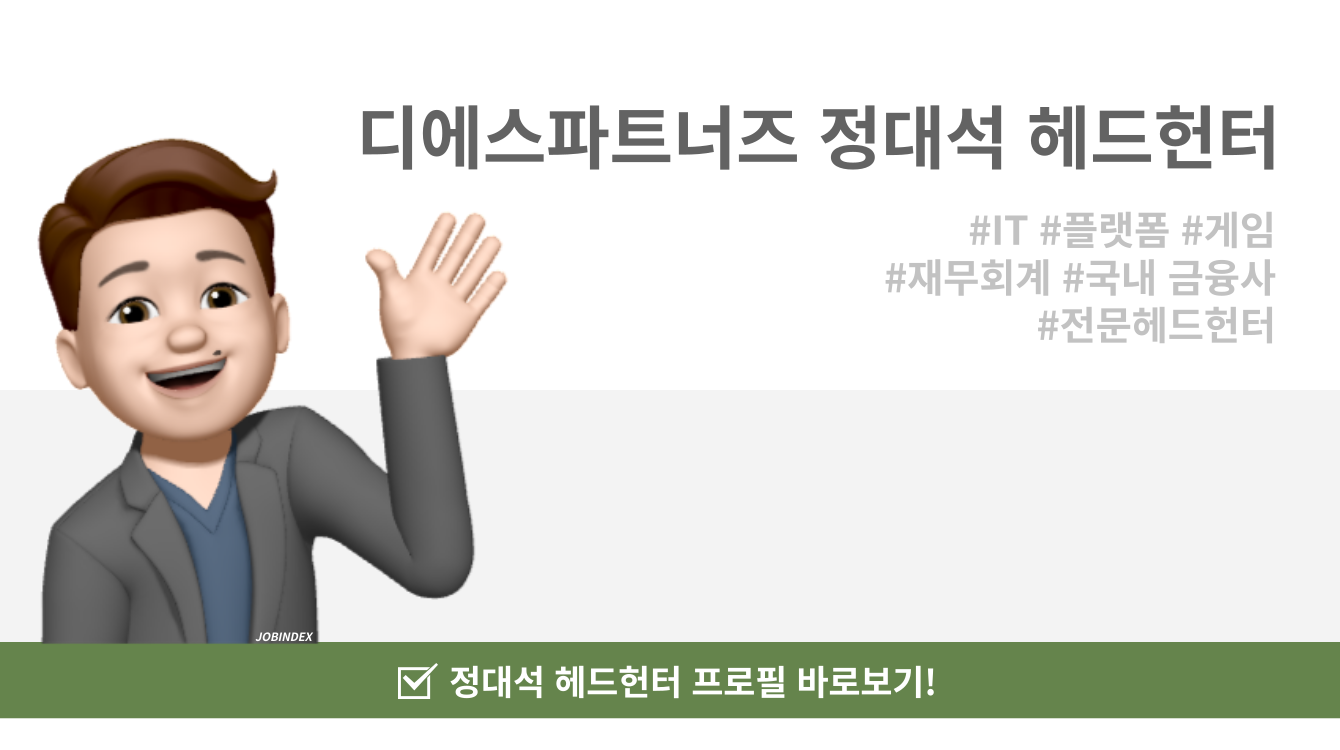 잡인덱스가 선정한 이달의 헤드헌터는 '디에스파트너즈 정대석 헤드헌터'입니다🙂