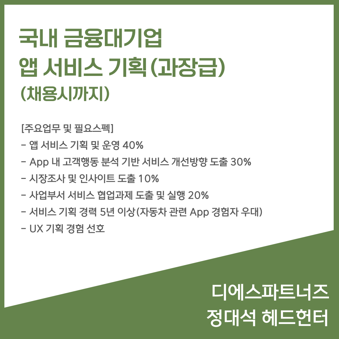 📢 국내 금융대기업 - 앱 서비스 기획(채용시까지)