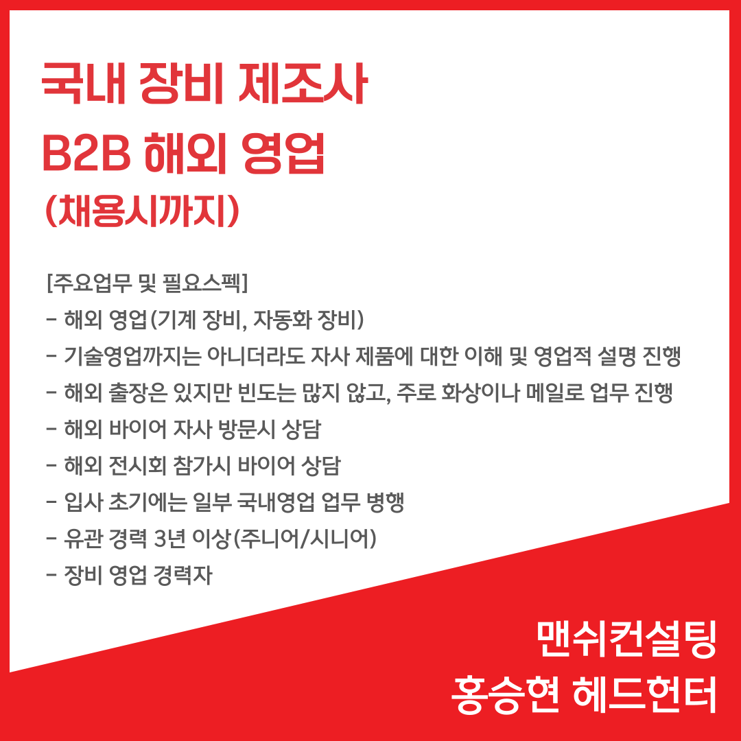 📢 국내 장비 제조사 - B2B 해외영업(채용시까지)