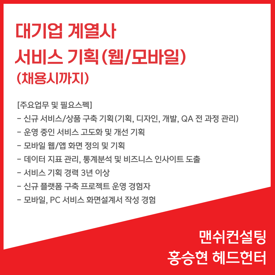 📢 대기업계열사 - 서비스기획 웹/모바일(채용시까지)