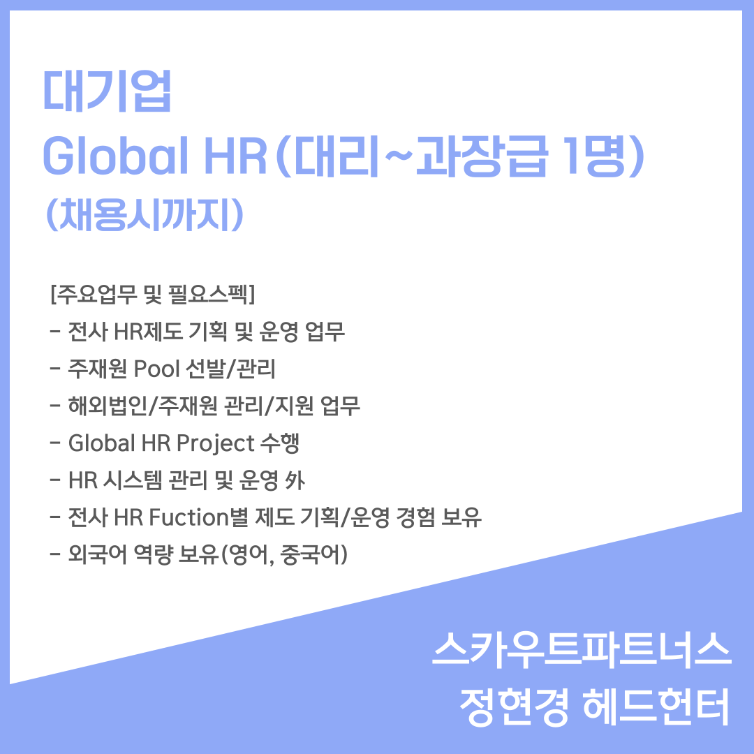 📢 [대기업] - Global HR 대리~과장급 1명(채용시까지)