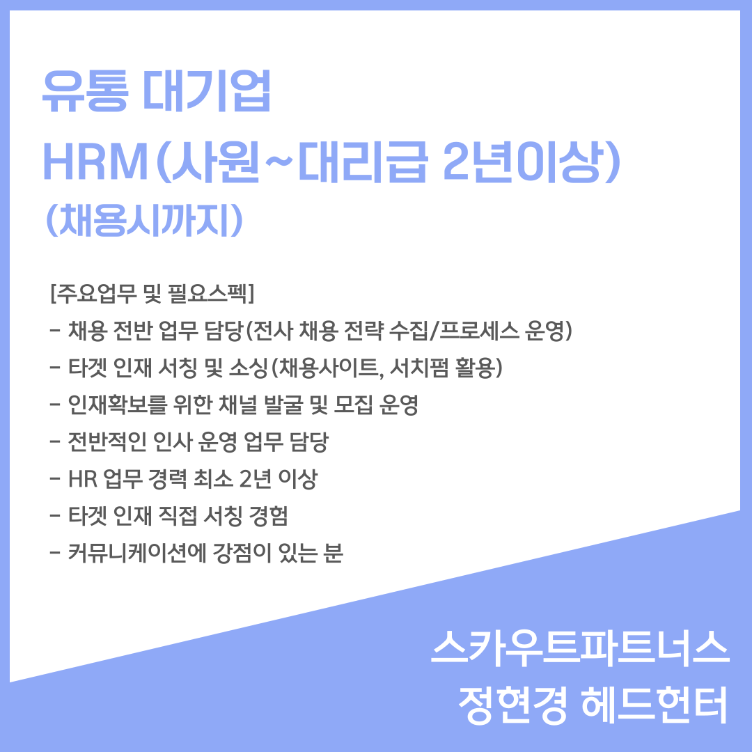 📢 [유통대기업] - HRM 사원~대리급 2년이상(채용시까지)