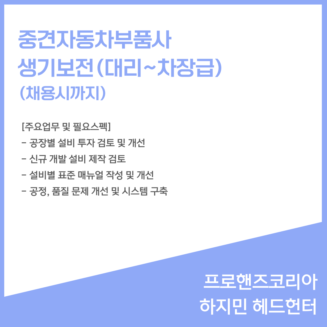 📢 [미국주재원] 중견자동차부품사 - 생기보전(채용시까지)
