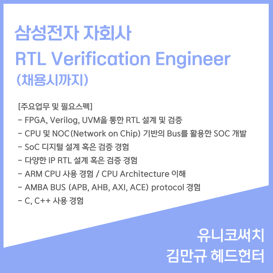 📢 [삼성전자 자회사] - RTL Verification Engineer(채용시까지)