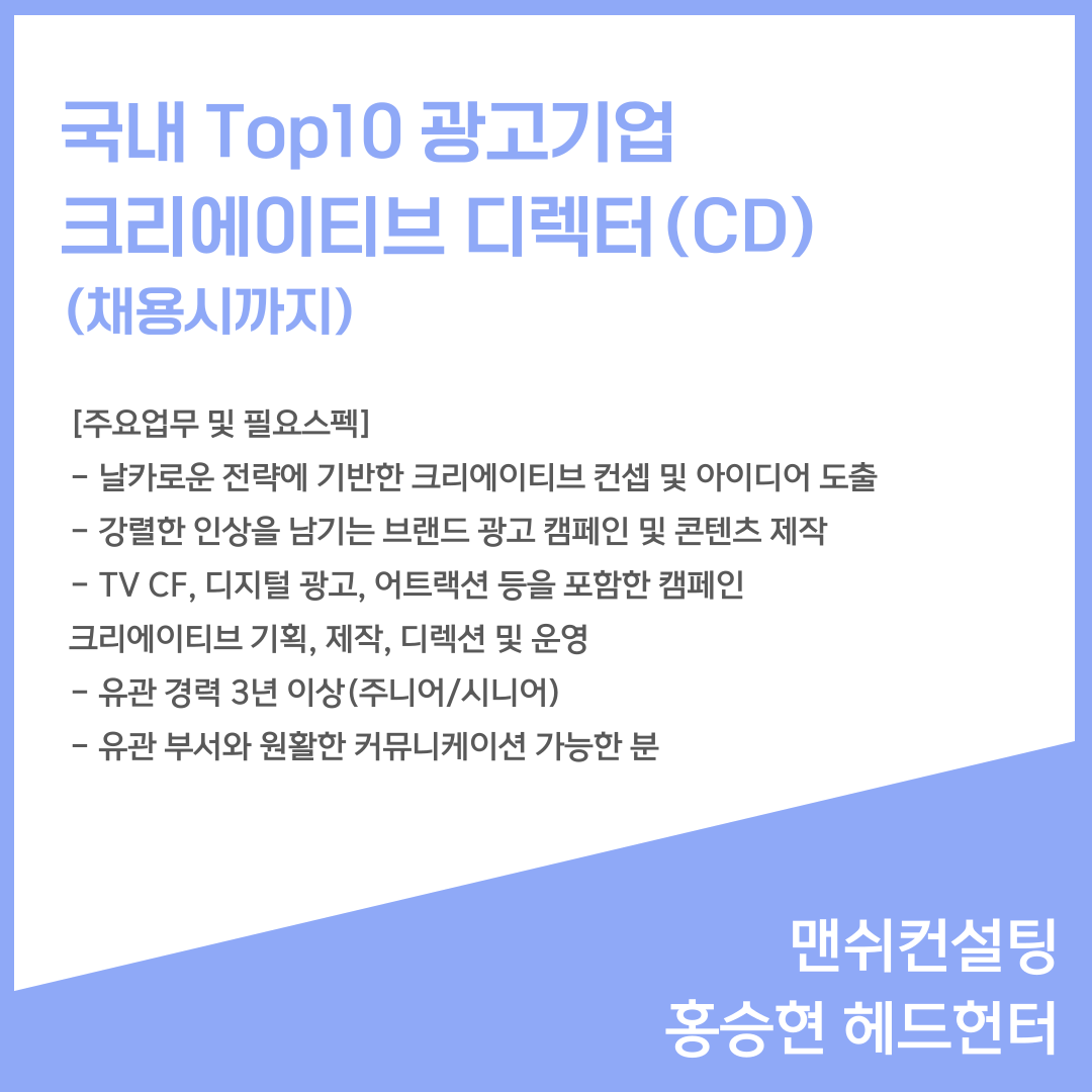 📢 [국내 top10 광고기업] - 크리에이티브 디렉터CD(채용시까지)