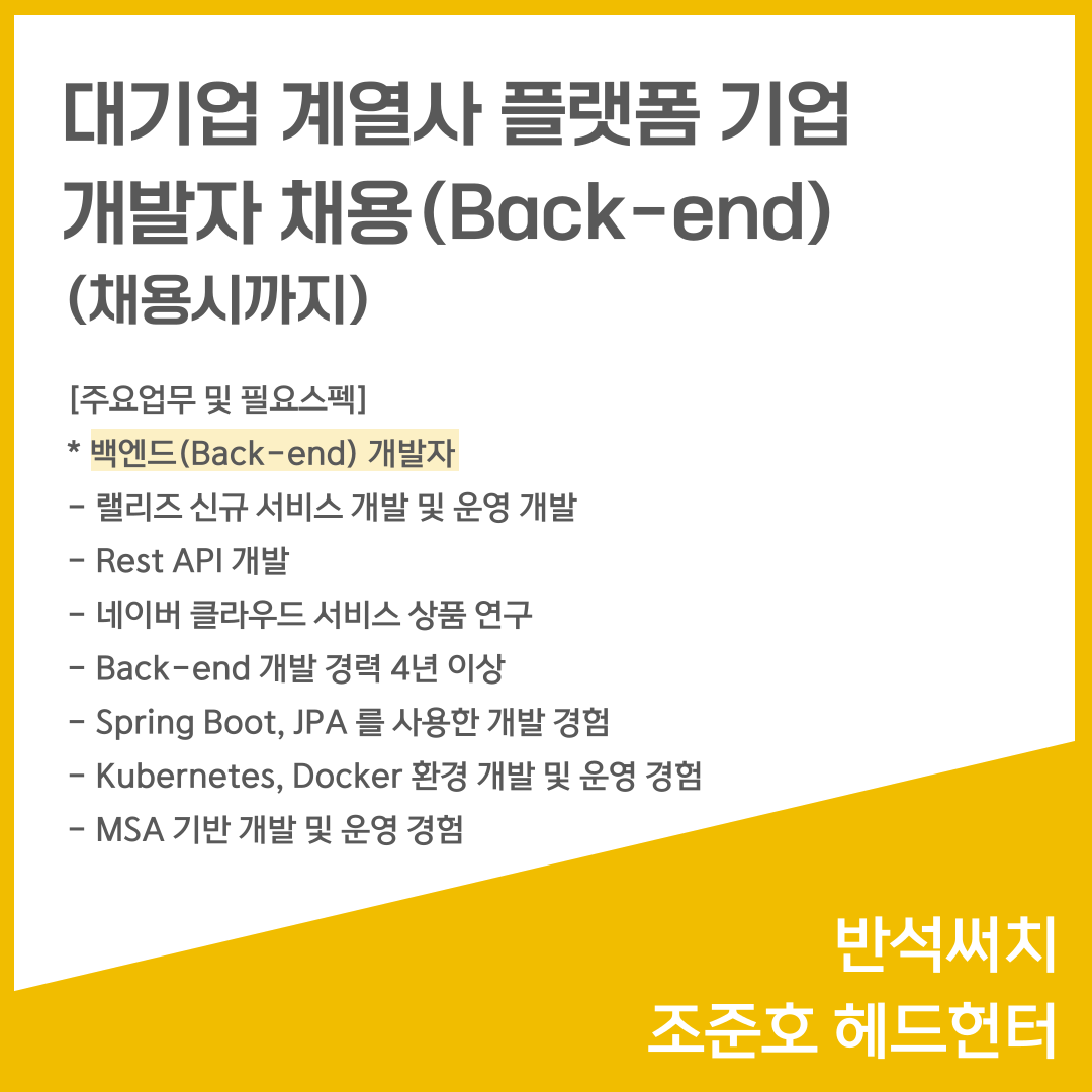 📣 [대기업 계열사 플랫폼 기업] - 개발자 채용 Back-end(채용시까지)