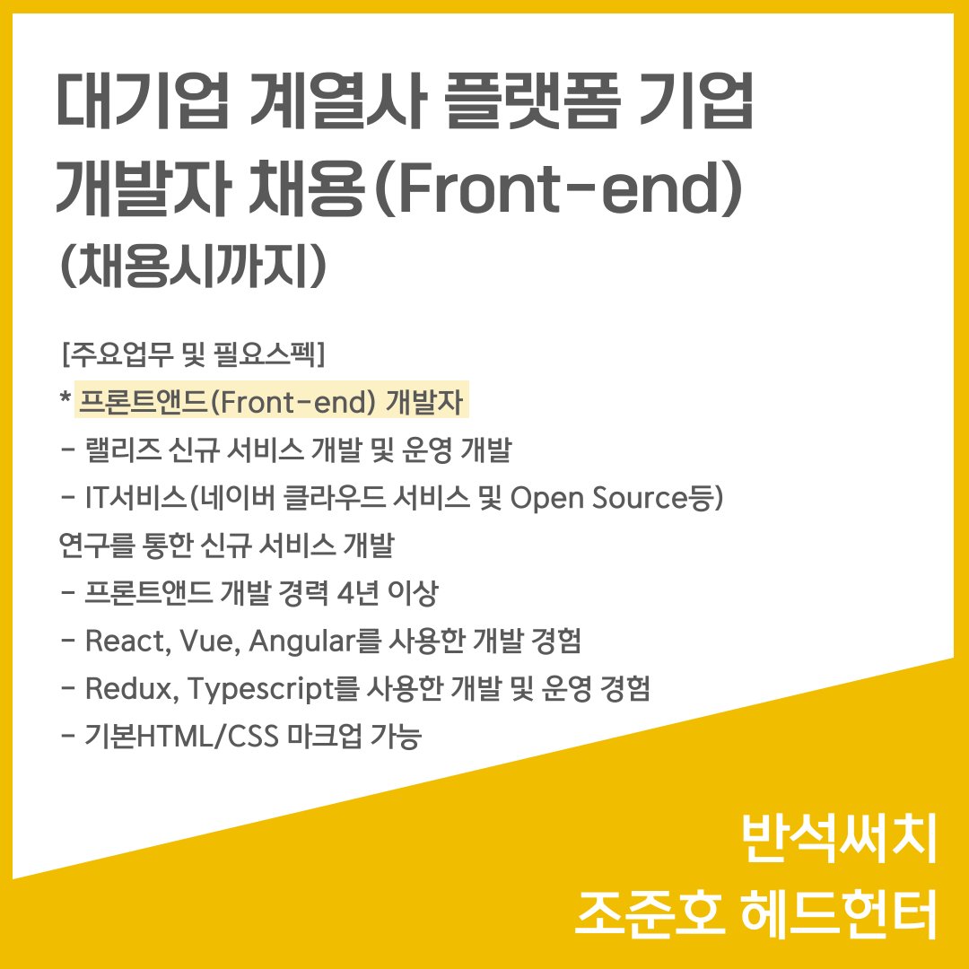 📣 [대기업 계열사 플랫폼 기업] - 개발자 채용 Front-end(채용시까지)