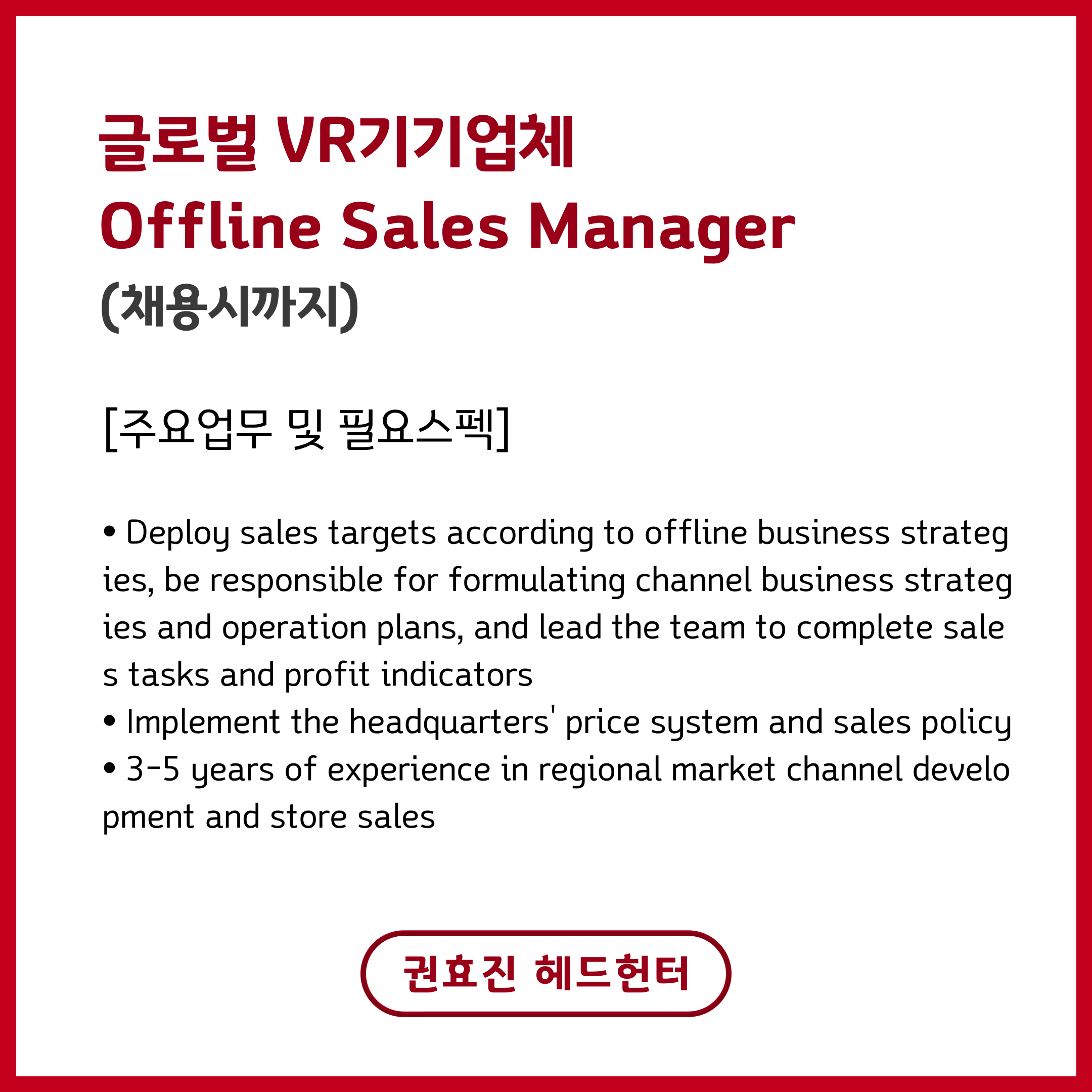 📢 [글로벌 VR기기업체] - Offline Sales Manager(채용시까지)