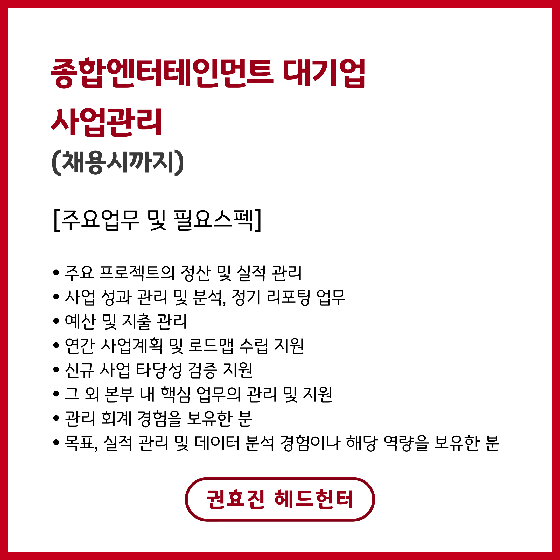 📢 [종합엔터테인먼트 대기업] - 사업관리(채용시까지)