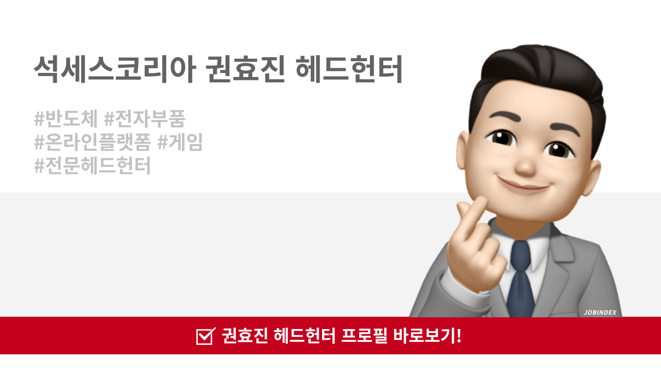 권효진 헤드헌터님은 현재 반도체, 전자부품, 온라인플랫폼, 게임 등 다양한 기업의 채용을 담당하고 계신데요!