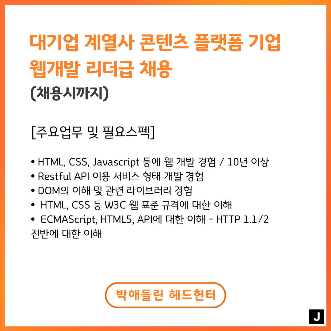 📢 [대기업 계열사 콘텐츠 플랫폼 기업] - 웹개발 리더(채용시까지)