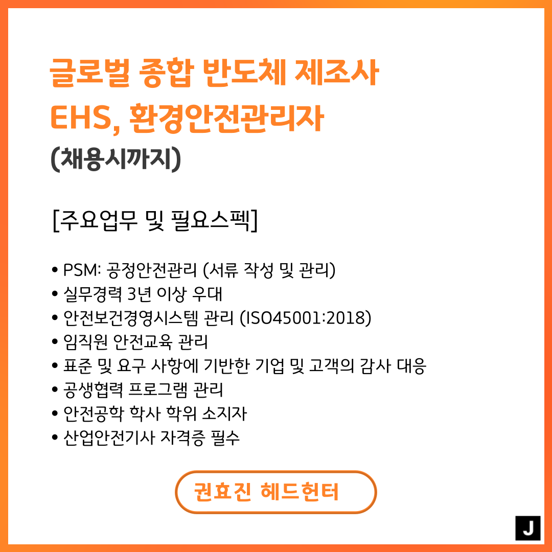 📢 [글로벌 종합반도체 제조사] - EHS, 환경안전관리자(채용시까지)
