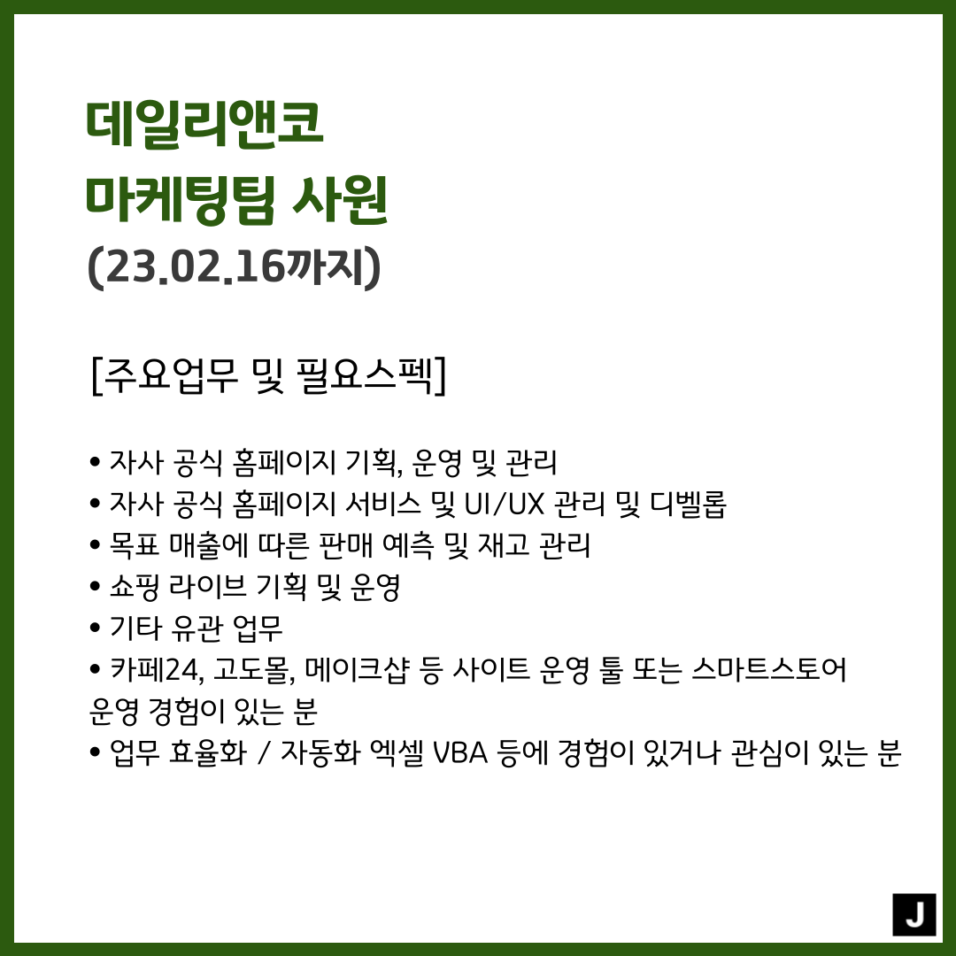 📣 데일리앤코 - 마케팅팀 사원(23.02.16까지)