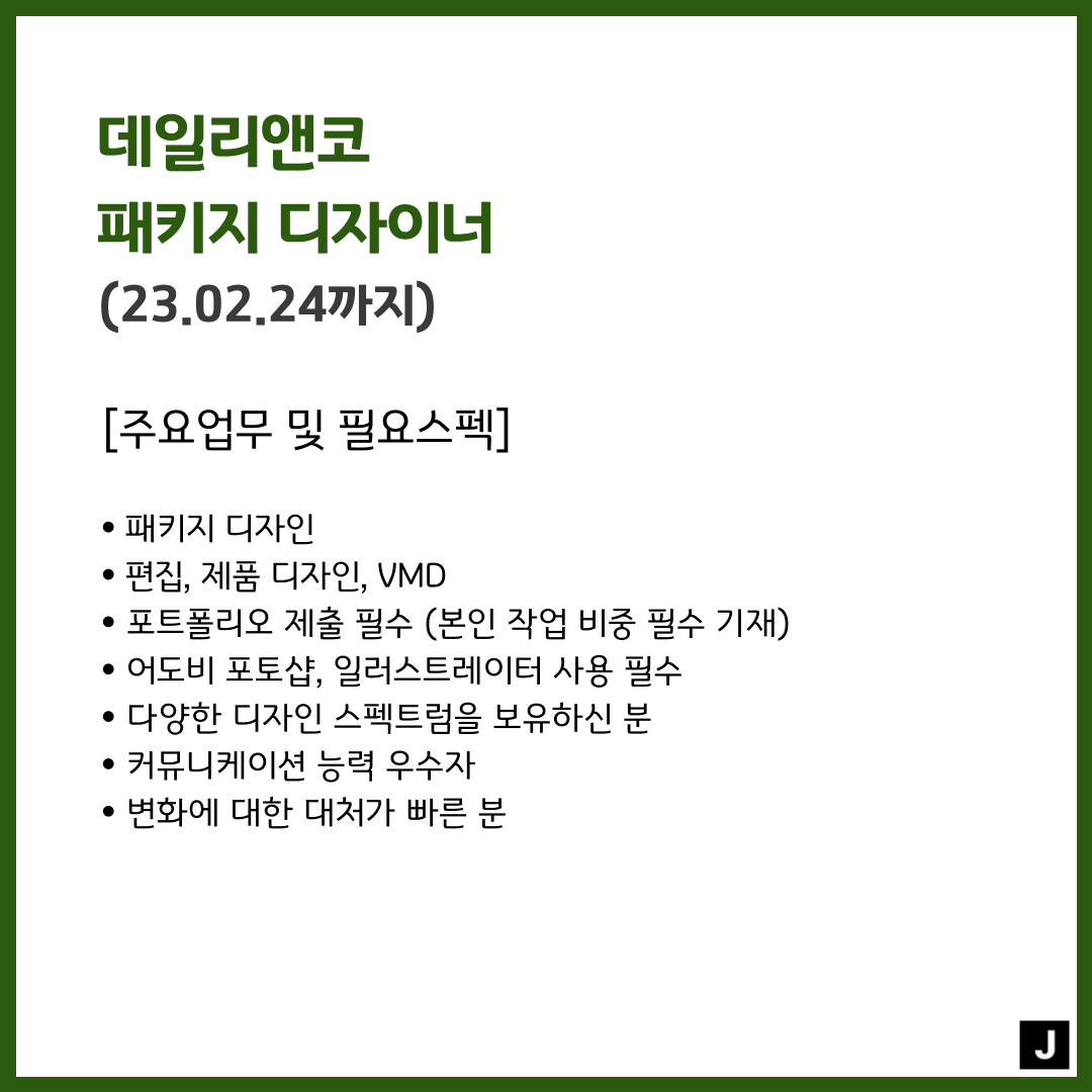 📣 데일리앤코 - 패키지 디자이너(23.02.24까지)