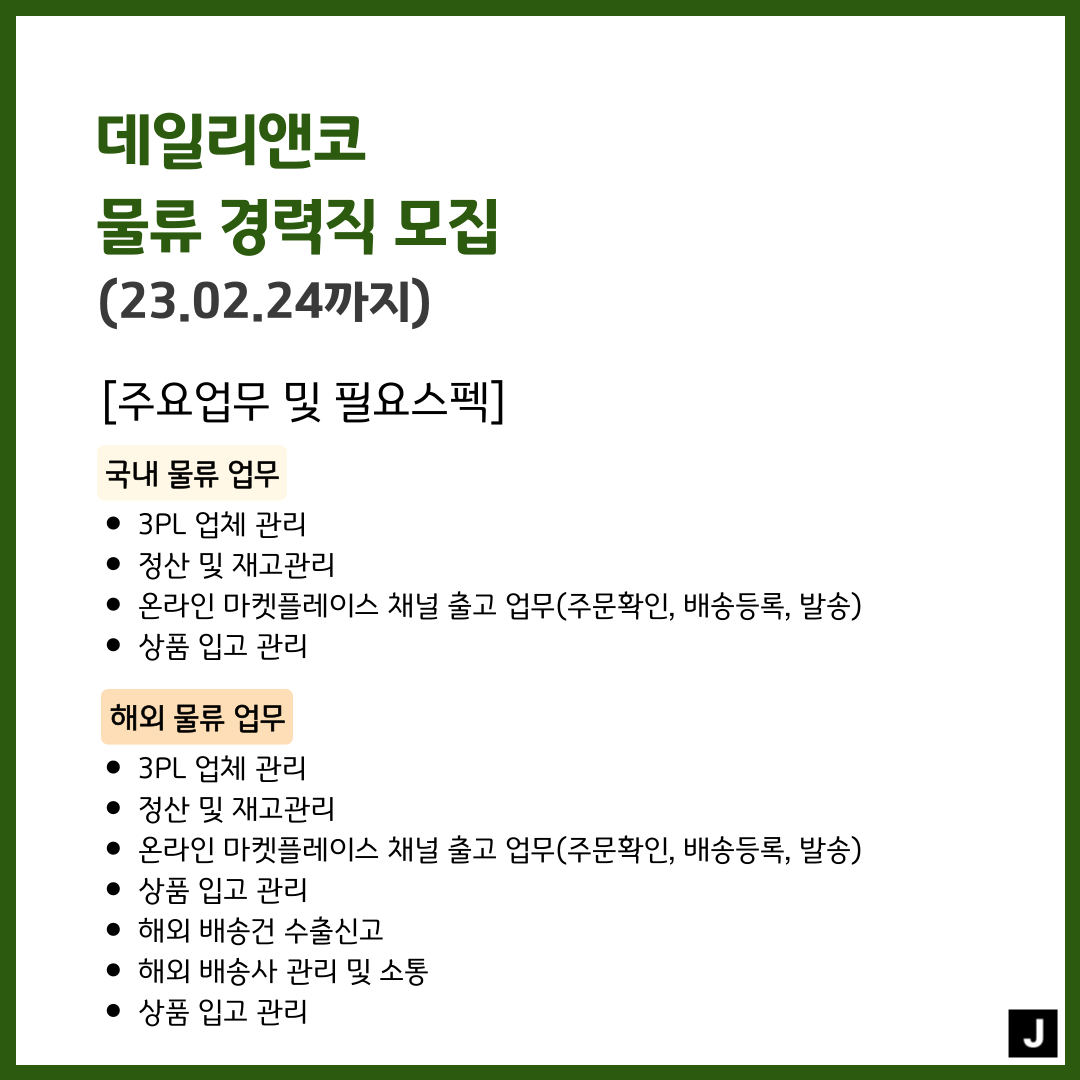 📣 데일리앤코 - 물류 경력직 모집(23.02.24까지)
