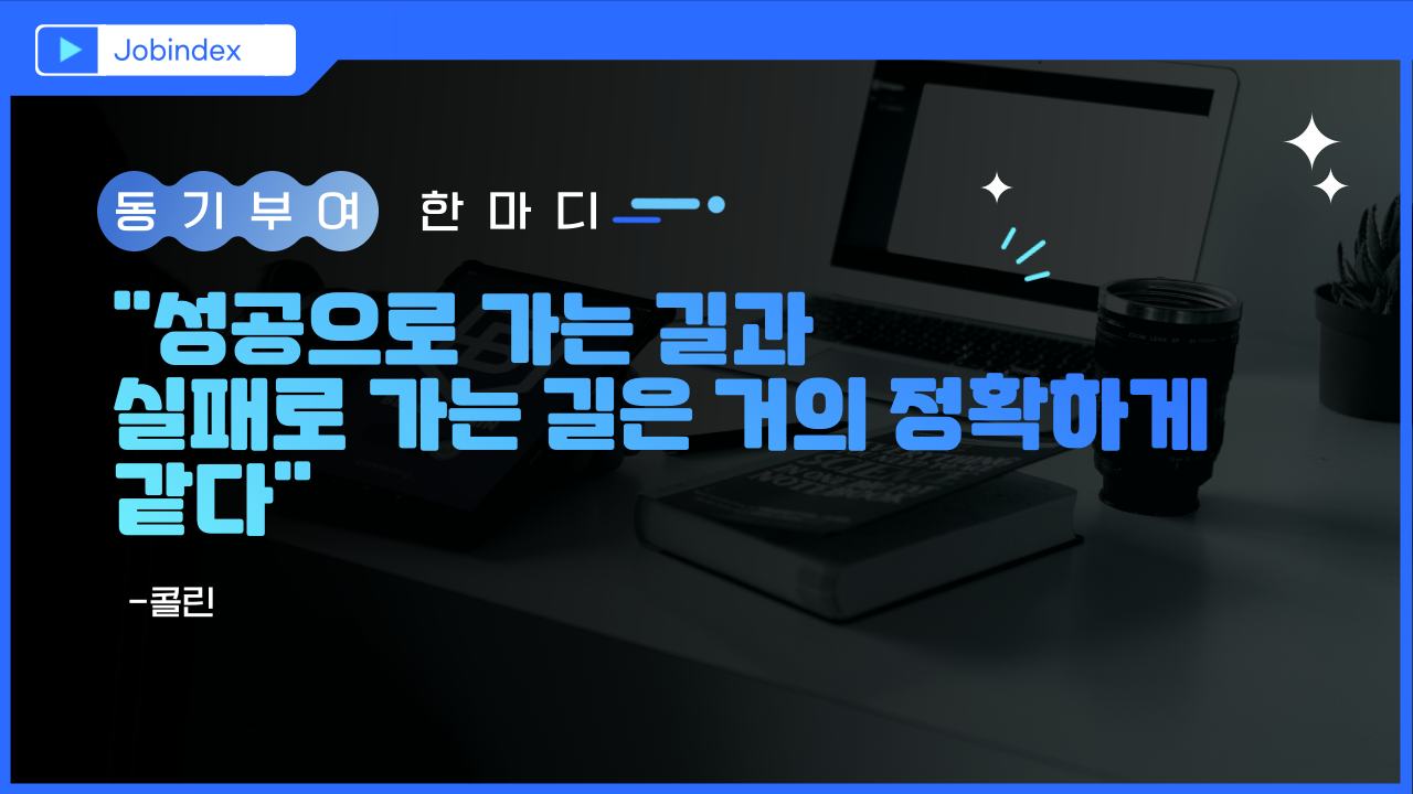 [경력직동기부여 #2311] 실패는 정말 끝인걸까? 성공은? 3,785 0 1 성공으로 가는 길과 실패로 가는 길은 거의 정확하게 같다. - 콜린 `23.03.21 다음글하루 10분, 나를 위한 커리어관리(*관심 태그 팔로우하고, 커리어 최신정보를 매일 받아보세요!) 이전글이직고민? | 경력직의 올인원 솔루션 잡인덱스