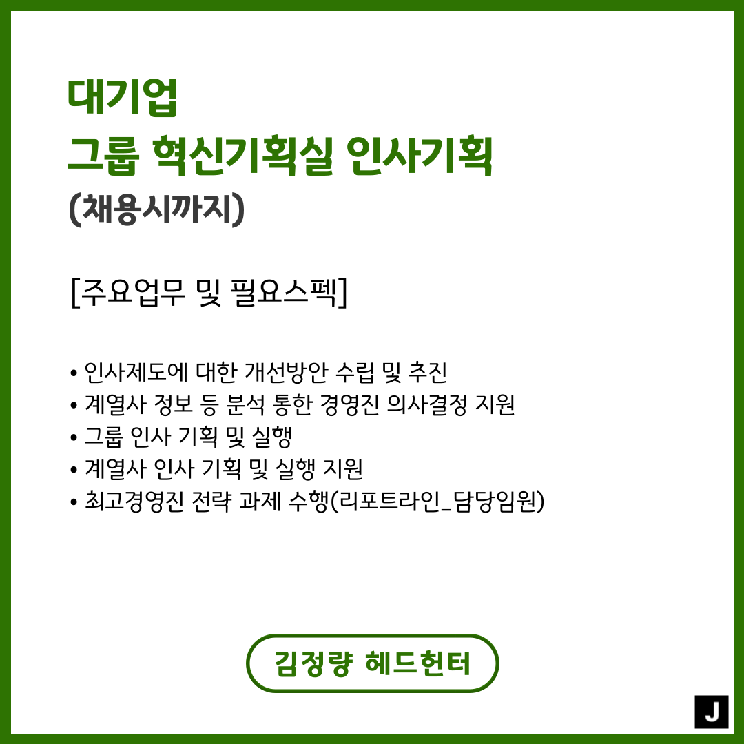 📢 [대기업] - 그룹 혁신기획실 인사기획(채용시까지)