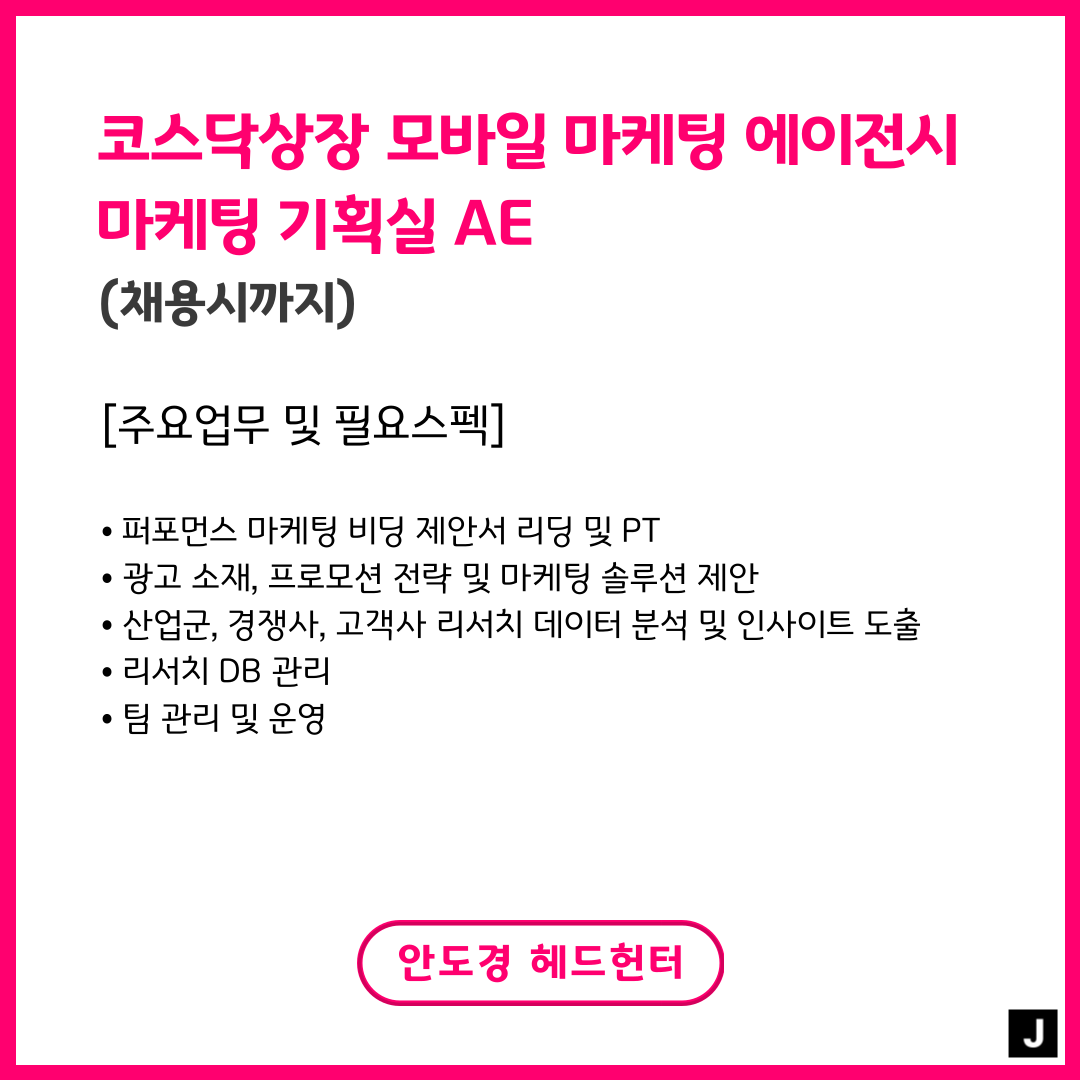 📢 [코스닥상장 모바일 마케팅 에이전시] - 마케팅 기획실AE(채용시까지)