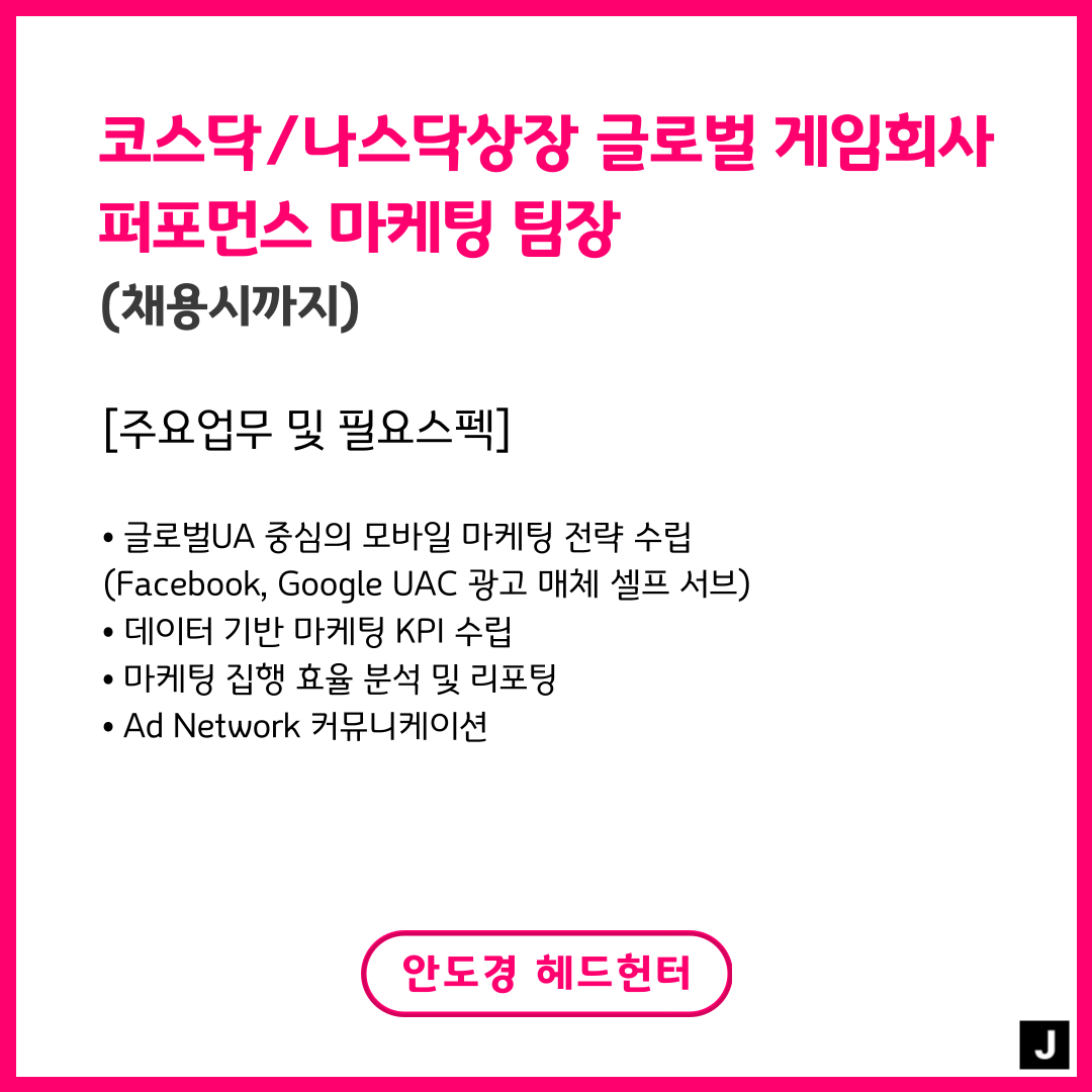 📢 [코스닥/나스닥상장 글로벌 게임회사] - 퍼포먼스 마케팅 팀장(채용시까지)