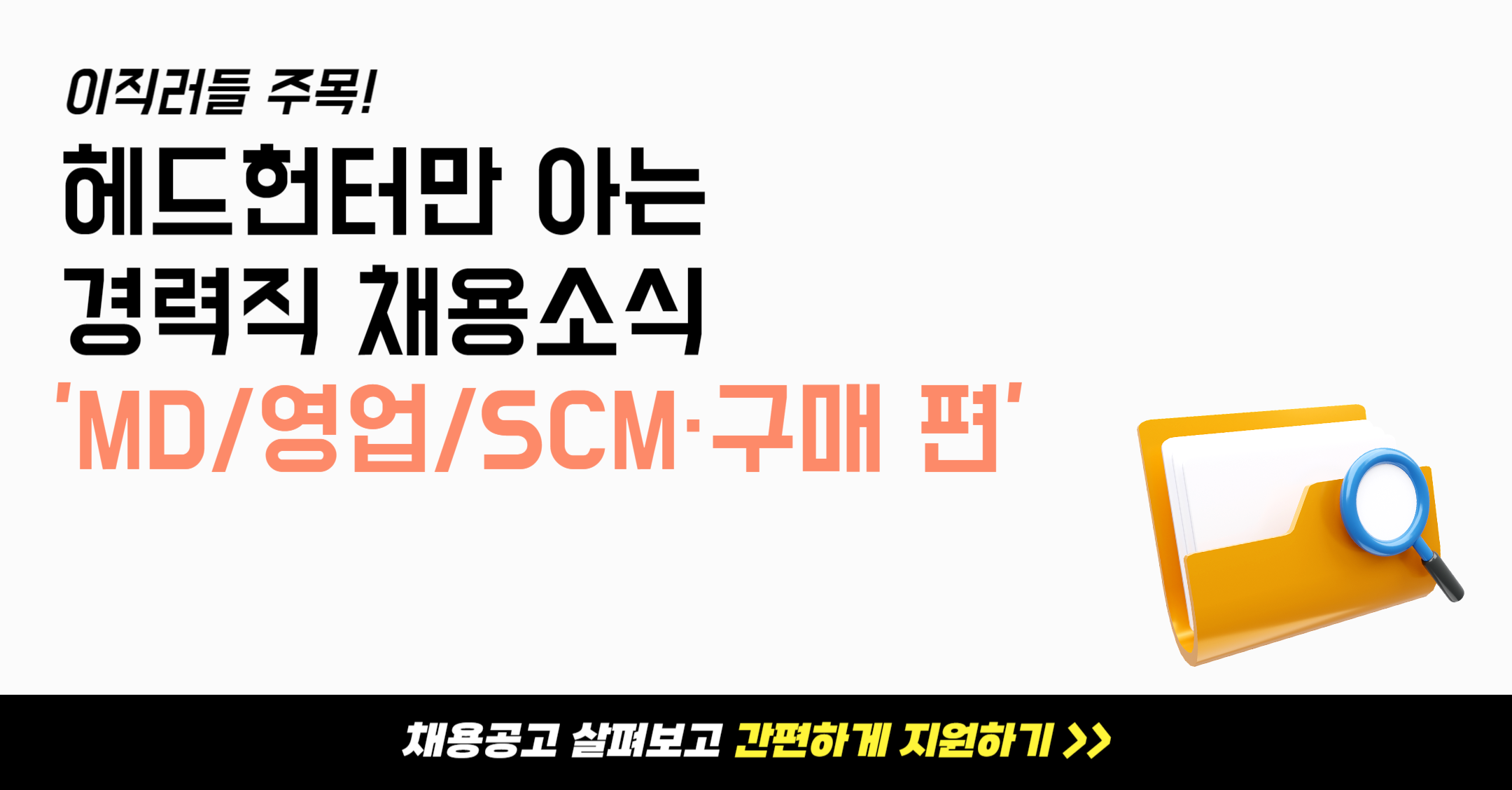 오늘은 헤드헌터만 아는 경력직 'MD/영업/SCM·구매' 채용소식을 전달해 드리려고 합니다.