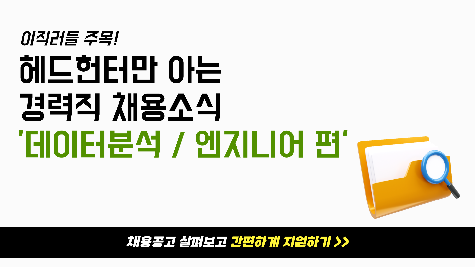 오늘은 헤드헌터만 아는 경력직 '데이터분석/엔지니어' 채용소식을 전달해 드리려고 합니다.