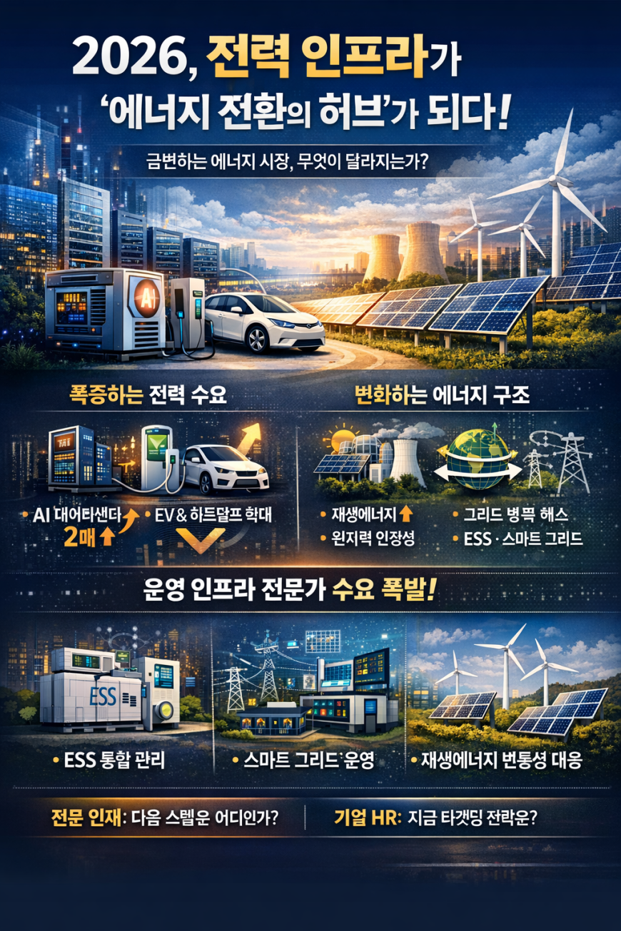 2026은 전력 인프라가 '에너지 전환의 허브'로 부상하는 해. 관련 인재 여러분, 이 흐름 속 다음 스텝은 무엇인가? 기업 HR이라면, 지금 타겟팅 전략을 세우라.